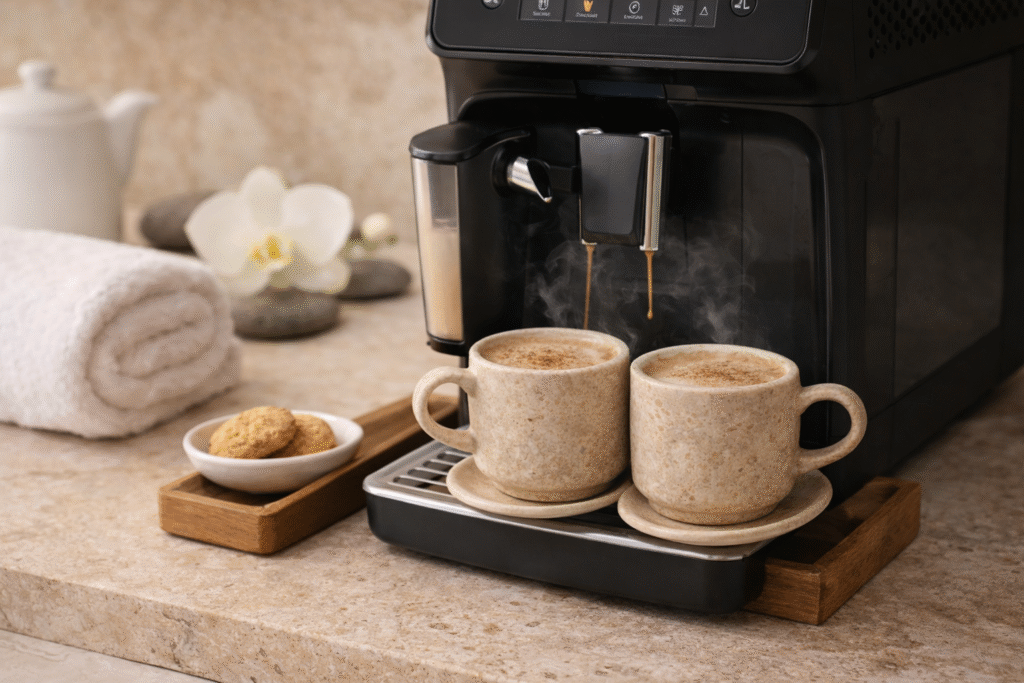 Café et thé offerts pour accompagner votre moment de détente.